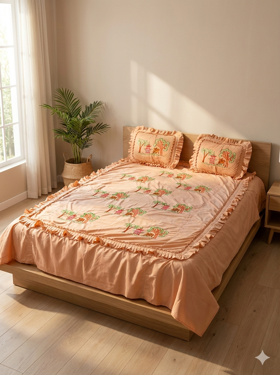 Upgrade your bedroom with this elegant and comfortable bedsheet set, designed to bring both style and softness to your space. Crafted from high-quality fabric, it offers a smooth texture, breathable feel, and long-lasting durability for everyday use. The refined finish and detailed stitching enhance the overall look, making it perfect for modern as well as classic interiors.